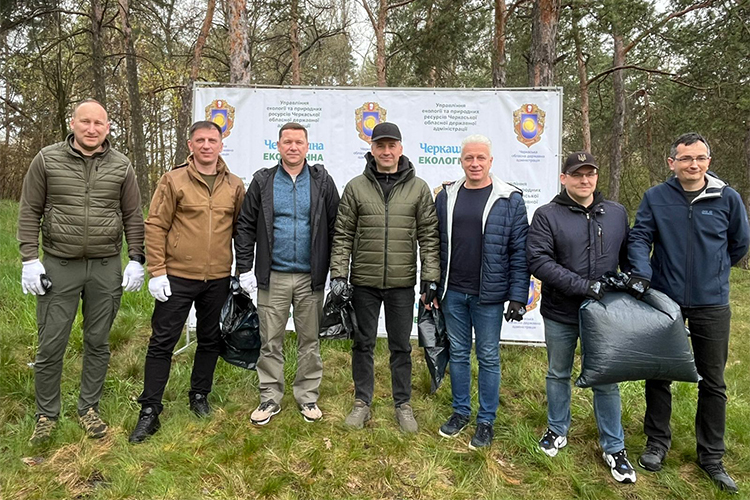Делегація Черкаського національного університету імені Богдана Хмельницького на чолі з в. о. ректора Євгенієм Кирилюком долучилася 17 квітня до екологічної акції з прибирання прибережної захисної смуги річки Дніпро в межах мікрорайону Дахнівський м. Черкаси.